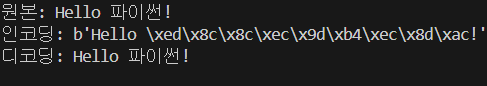 print(encoded) # b'\xed\x8c\x8c\xec\x9d\xb4\xec\x8d\xac'